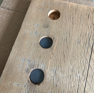 Once the magnets are securely nestled in their home I attach the back piece to give a clean and tidy look. Sometimes adding this back piece may take a few attempts to get right. Because of the age of the wood plus the way the grain is running and the way I'm drilling into it, sometimes it will split on me, especially if I get too close to the edge. So this takes some patience and finesse.